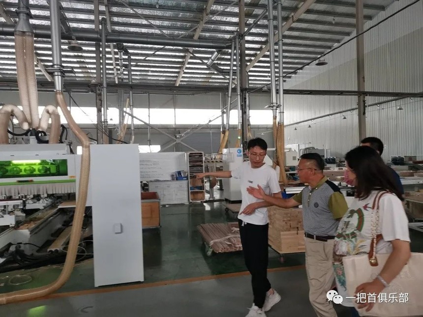 在华谊家具业务总经理毕京星先生的引导下,一把首成员先后参观了华谊家具集团的生产工厂和展厅,华谊家具生产车间执行严格的环保标准,地面一尘不染,用料选材严格,管理制度完善,设备现代化程度非常高。工厂现场参观
